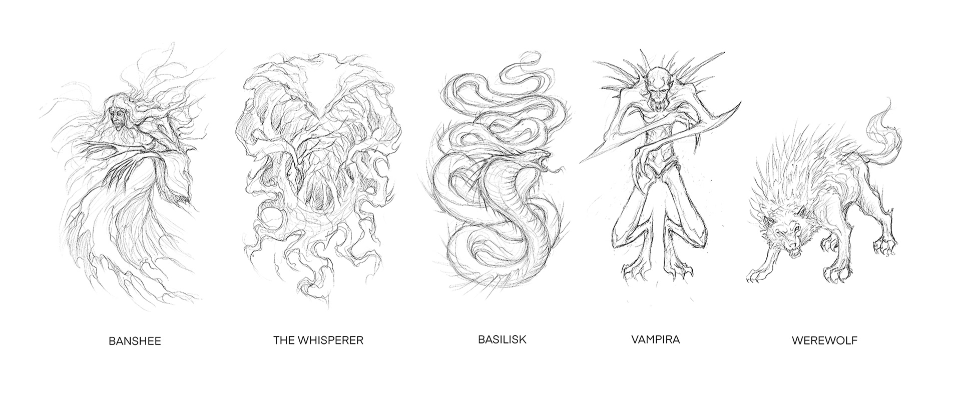 Creature illustrations for Susan Dennard's "The Luminaries" Nightmare Compendium.