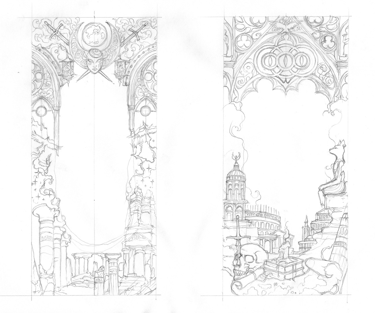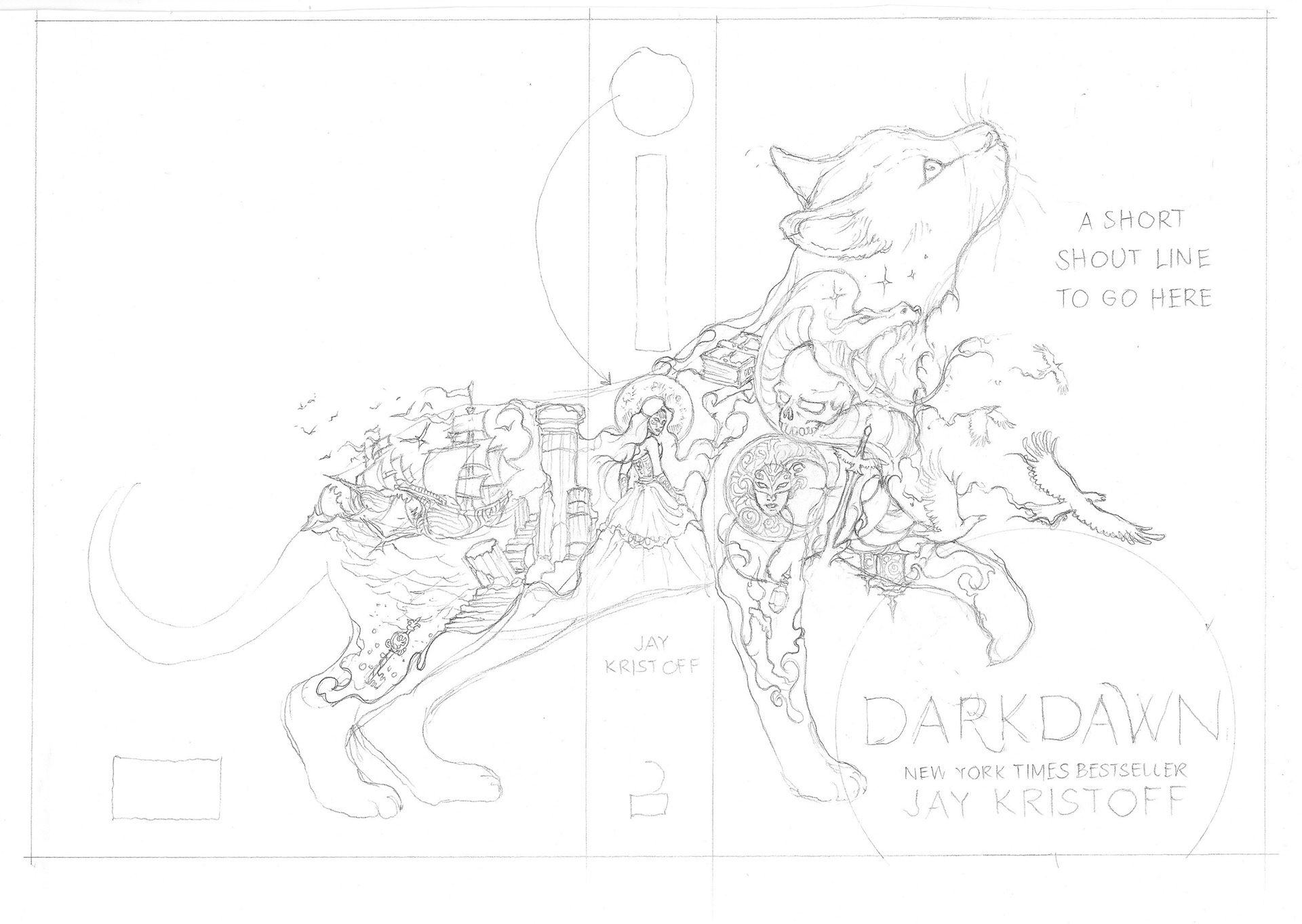 Rough sketches of the flaps illustrations.