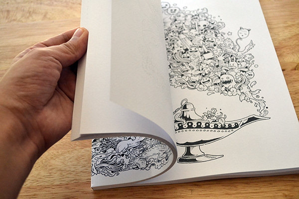 A coloring book featuring 50 unique and detailed doodles and illustrations. Published by Zifflin in 2013.