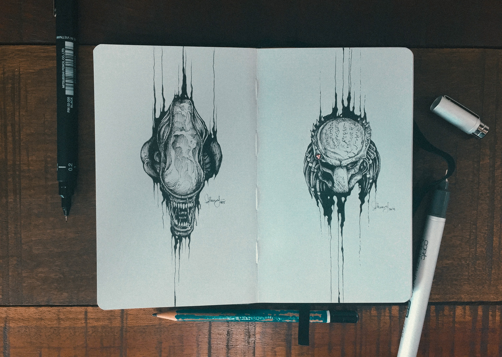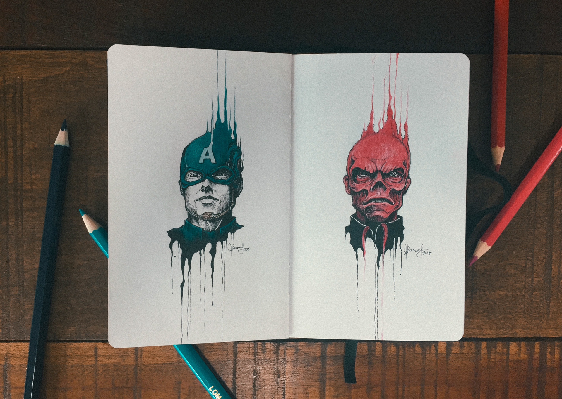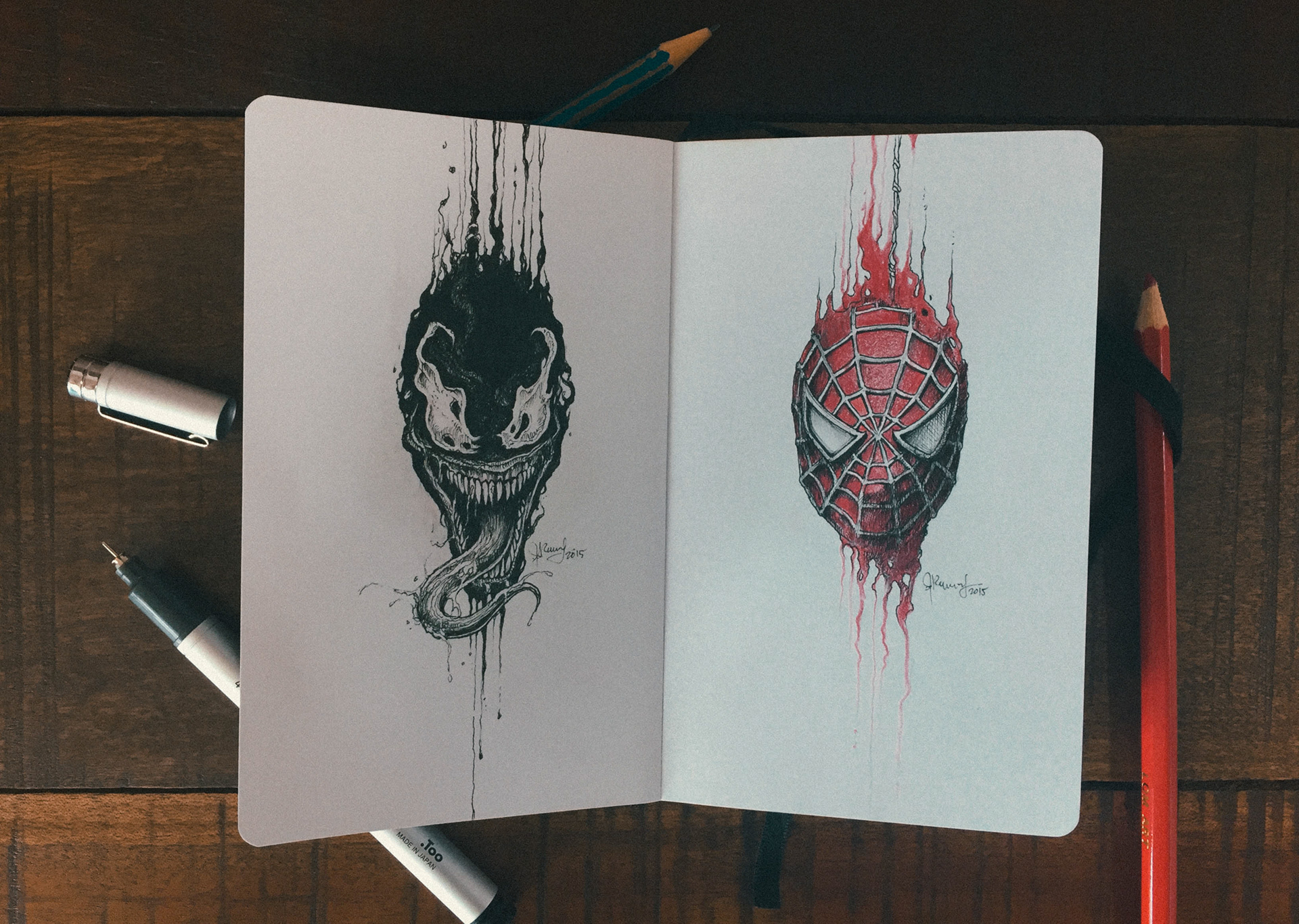 Personal experiment on drawing people and adding a bit of color in my inky style. Done on Leuchtturm1917 sketchbook using multiliners and colored pencils.