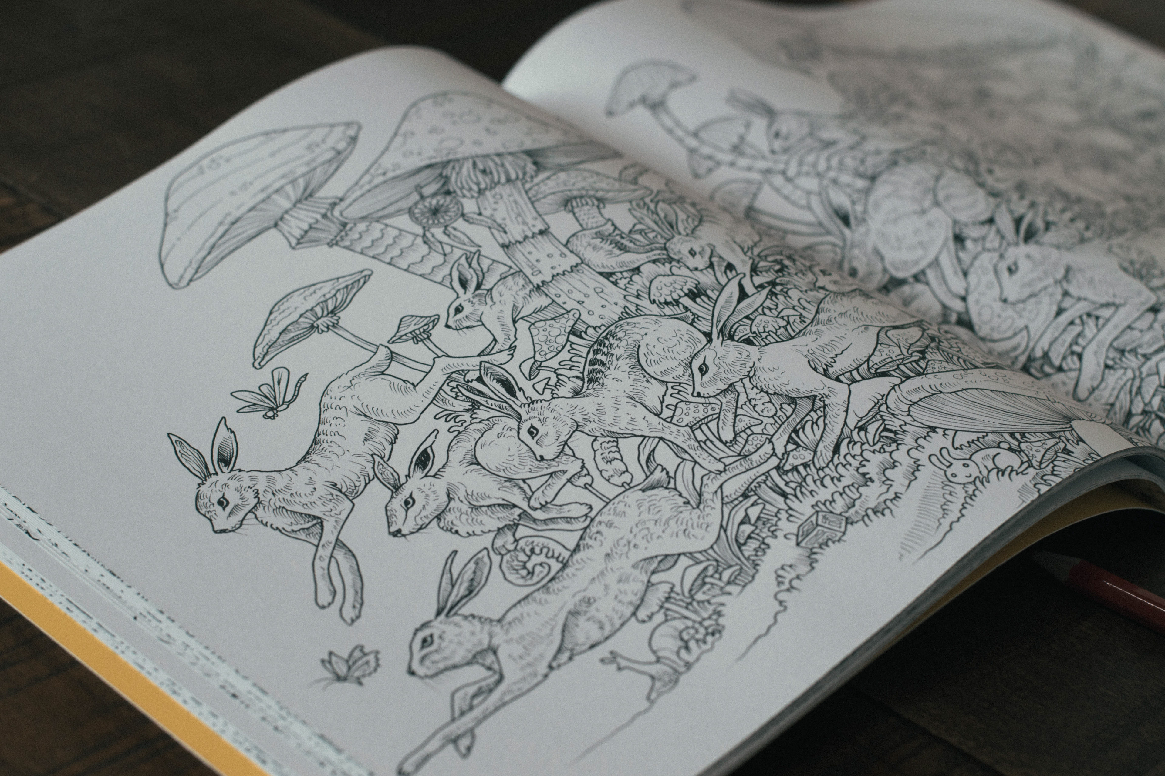 Second book from the coloring book trilogy, Imagimorphia features intricate black and white illustrations of animals, objects and fantasy landscapes morphing into doodles and details.
