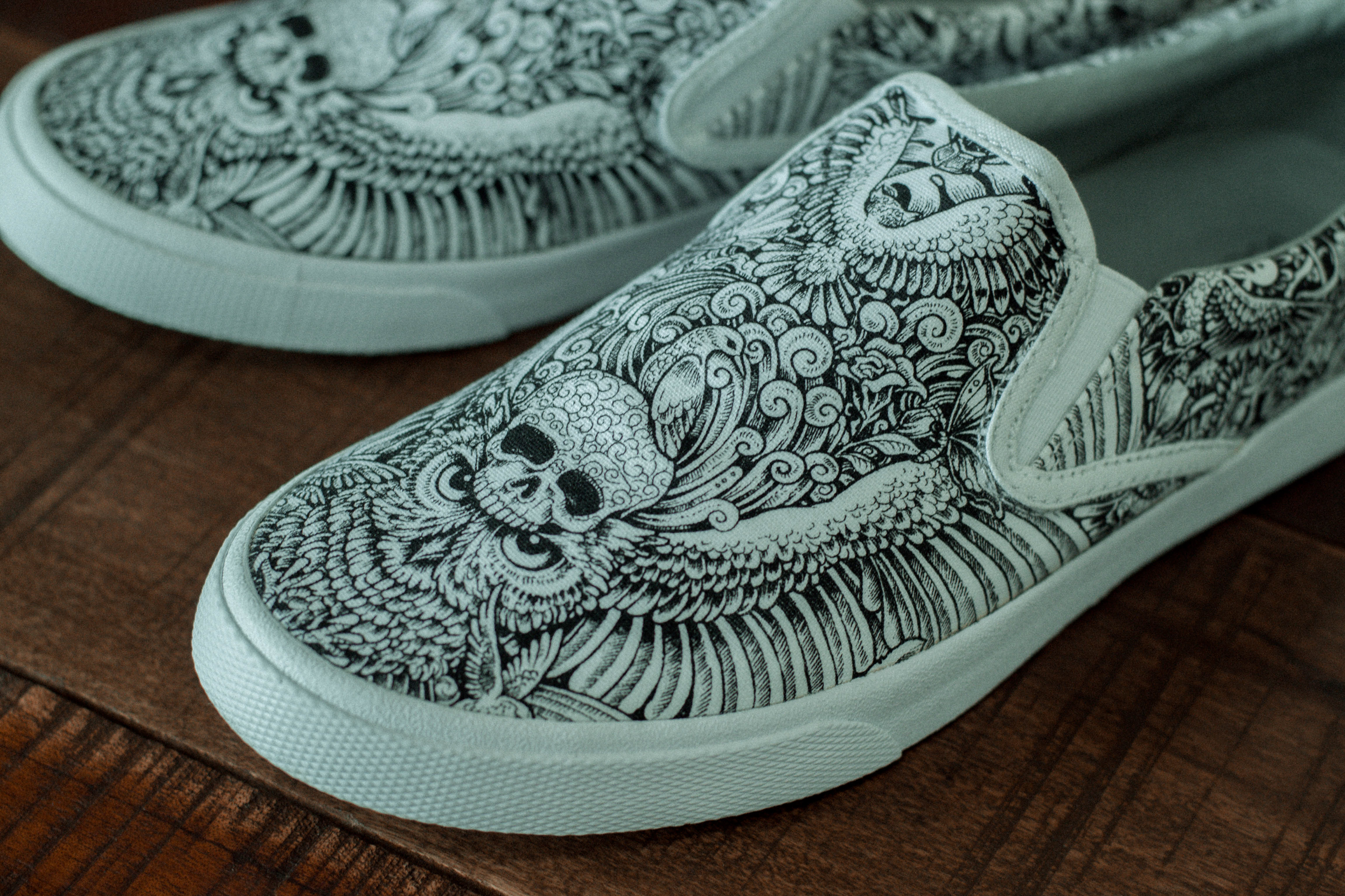 Series of designs for Bucketfeet artists capsule collection. The illustrations represent the elements (earth, air, water and fire) printed on limited edition shoes.