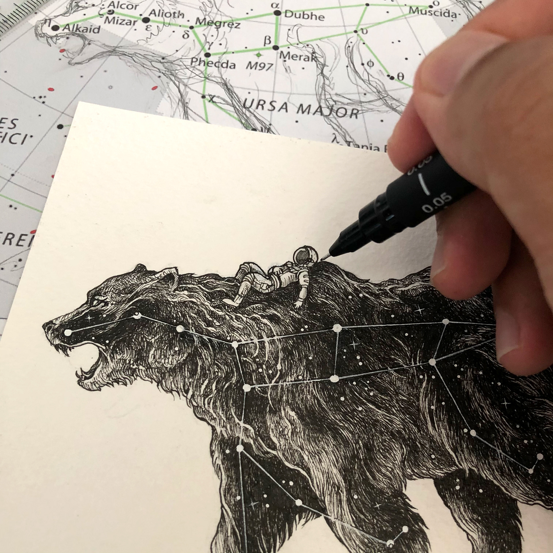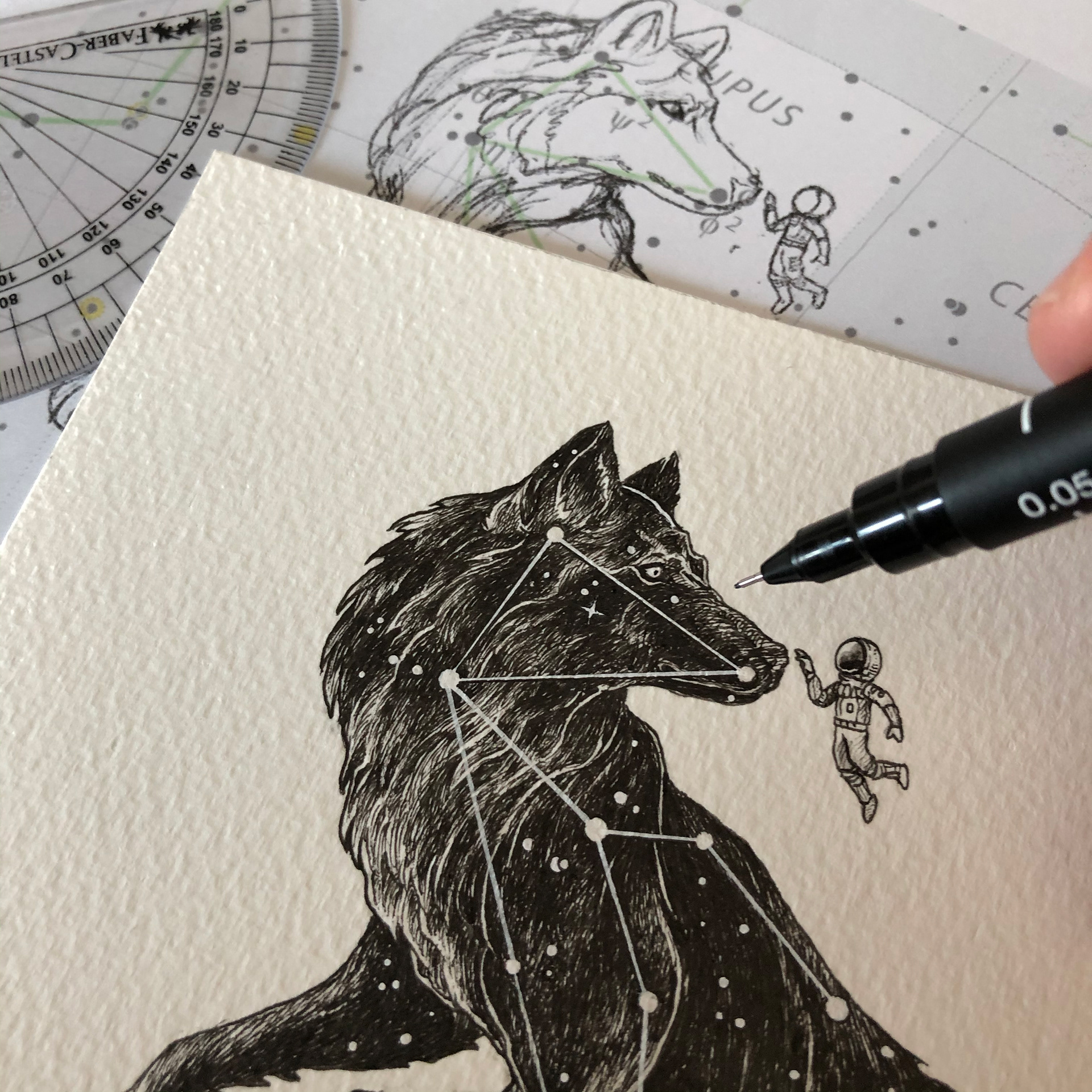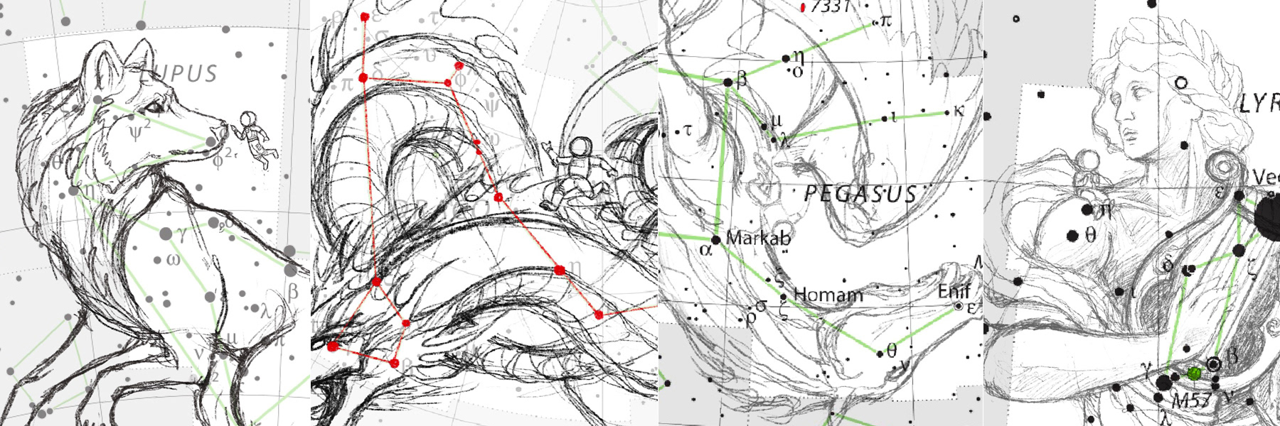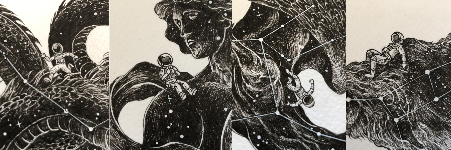 A personal series of illustrations featuring the #LostSpaceBoy in some popular constellations.