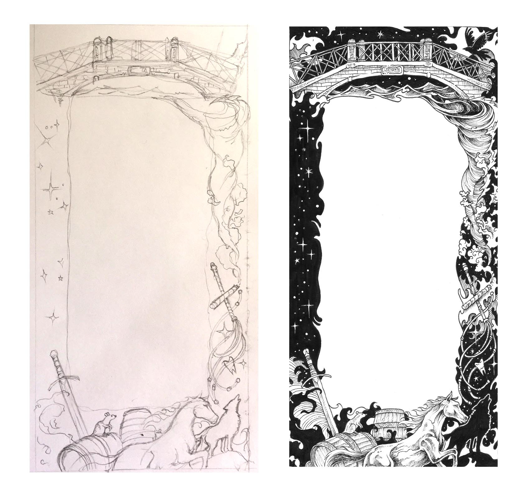 Illustrations for the UK edition cover of Jay Kristoff's novel "Nevernight". Commissioned by Harper Voyager UK. Cover design and art direction by Cherie Chapman.