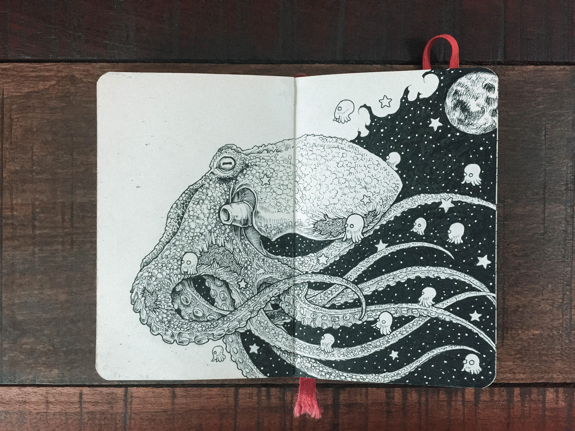 Selected doodles and illustrations from 2015-2016 sketchbooks. Done using markers and multiliners on Moleskine pocket sketchbook.