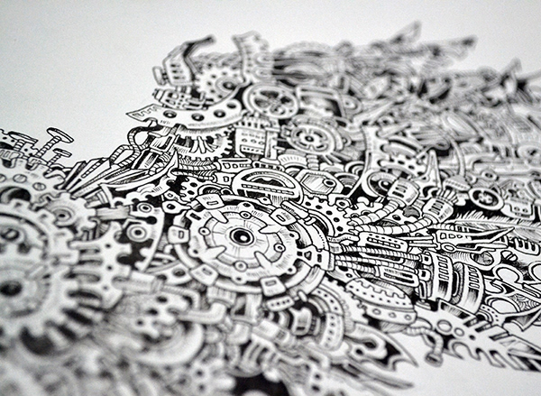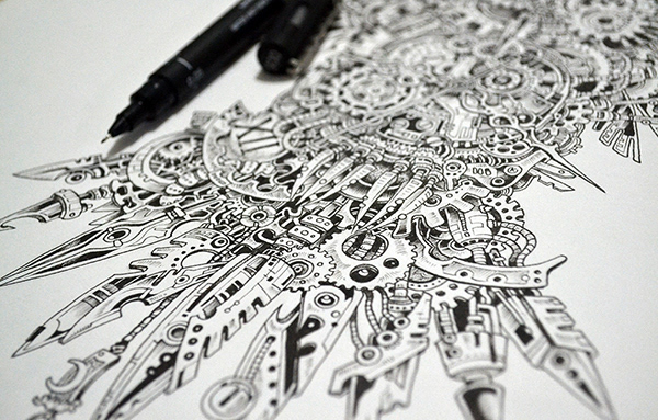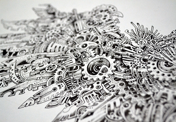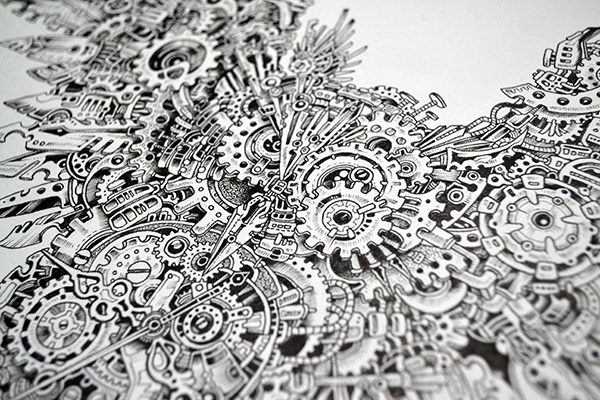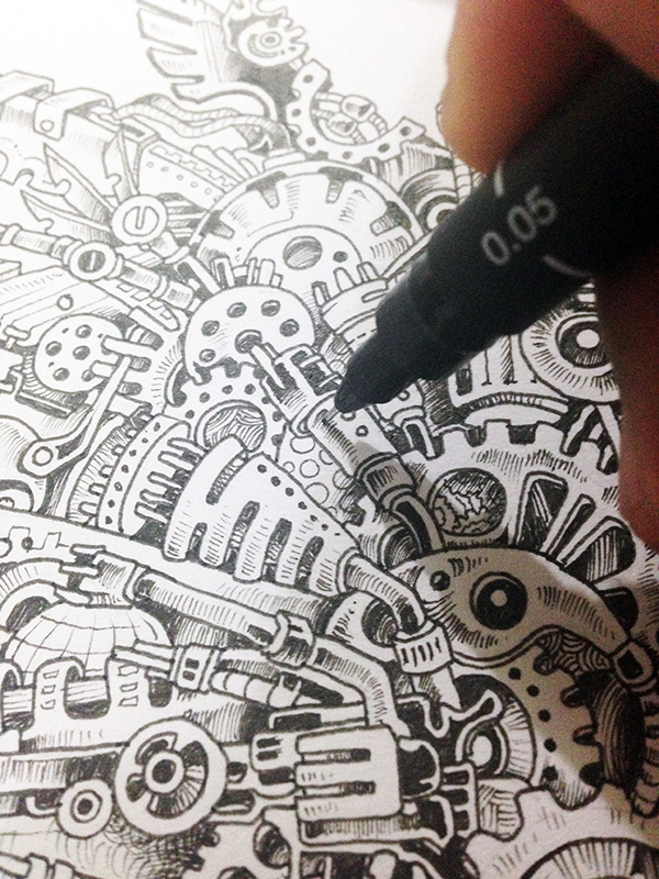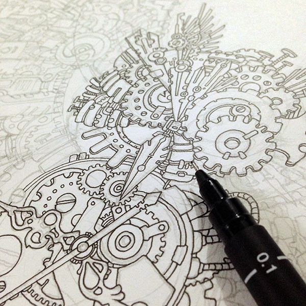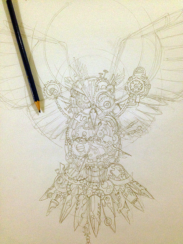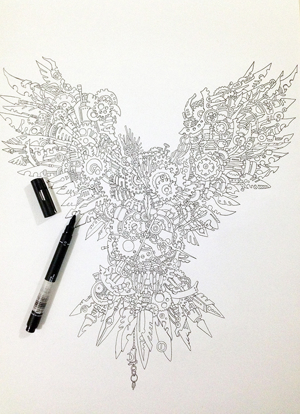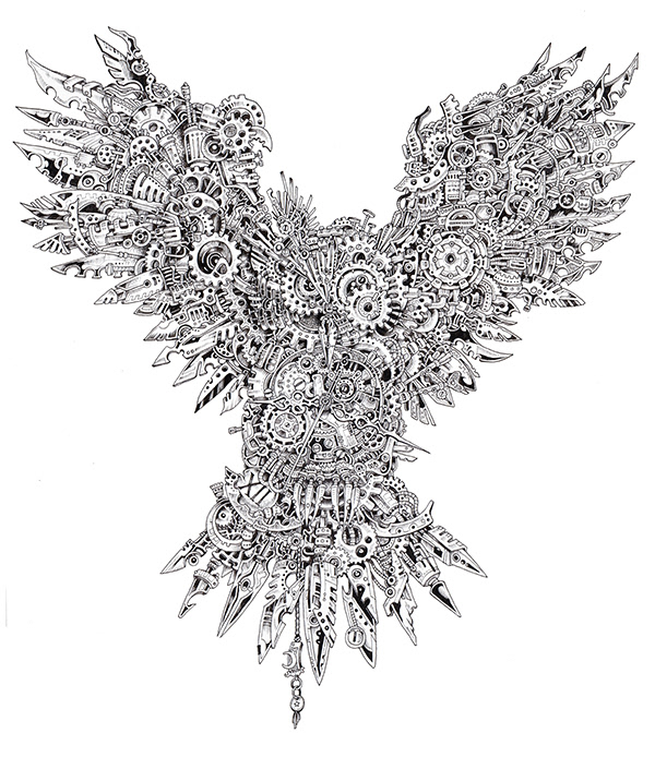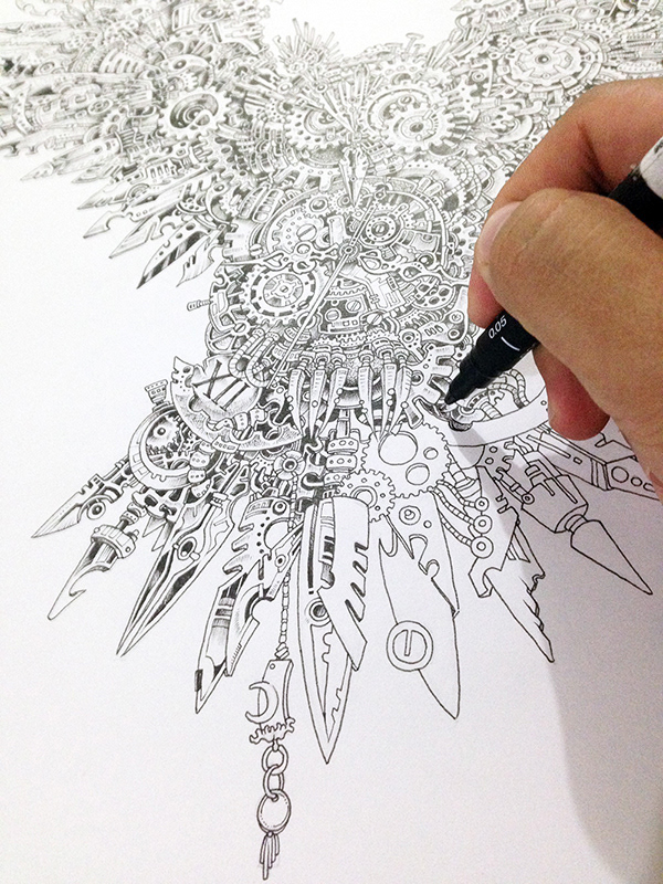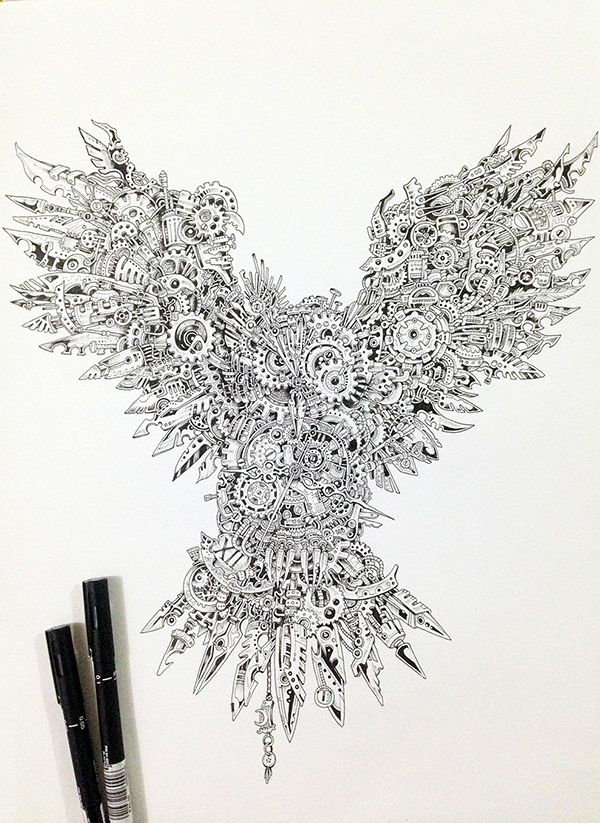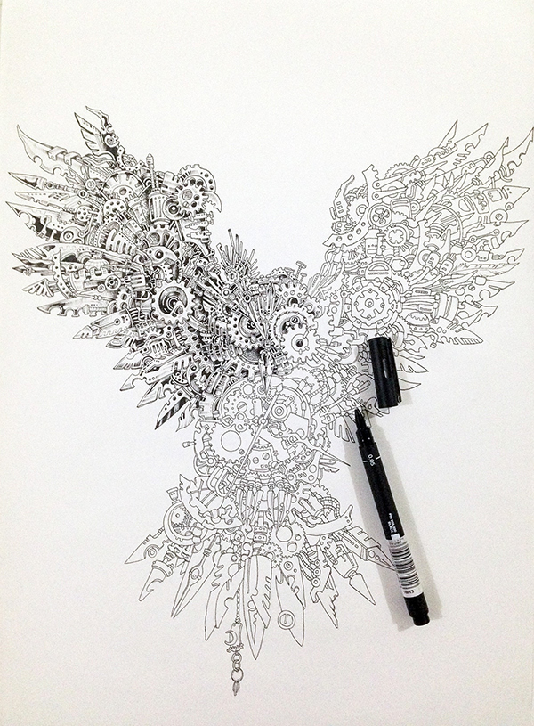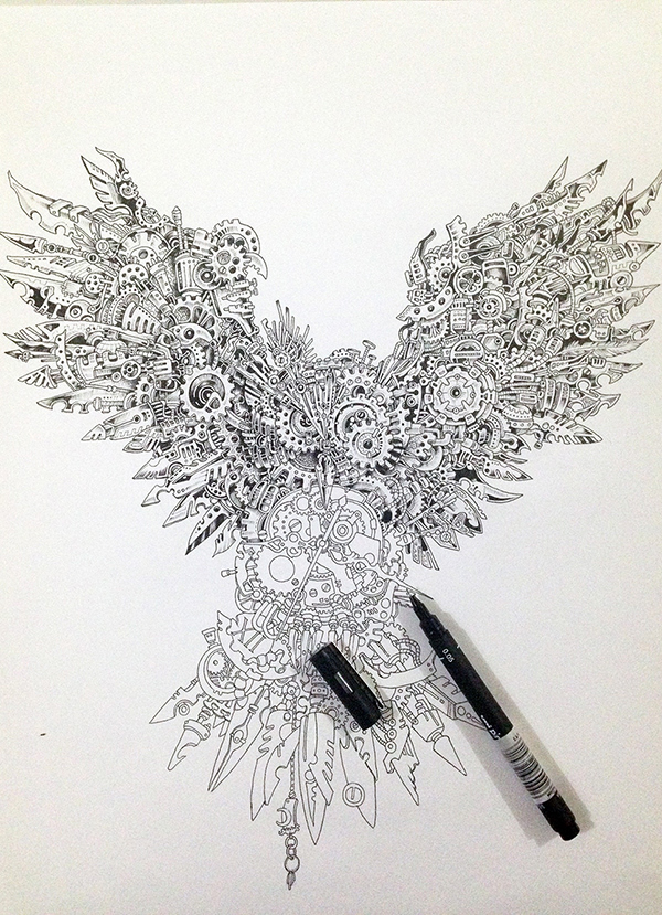Commissioned work for Zero Square - Malaysia as one of the upcoming designs for their clothing line. The brief was simple: create an artwork depicting a mechanical/steampunk owl. The resulting piece was called "Time Guardian". Created using Uni Pin Fineliners in an 11 x 16 inches of Canson sketch paper.