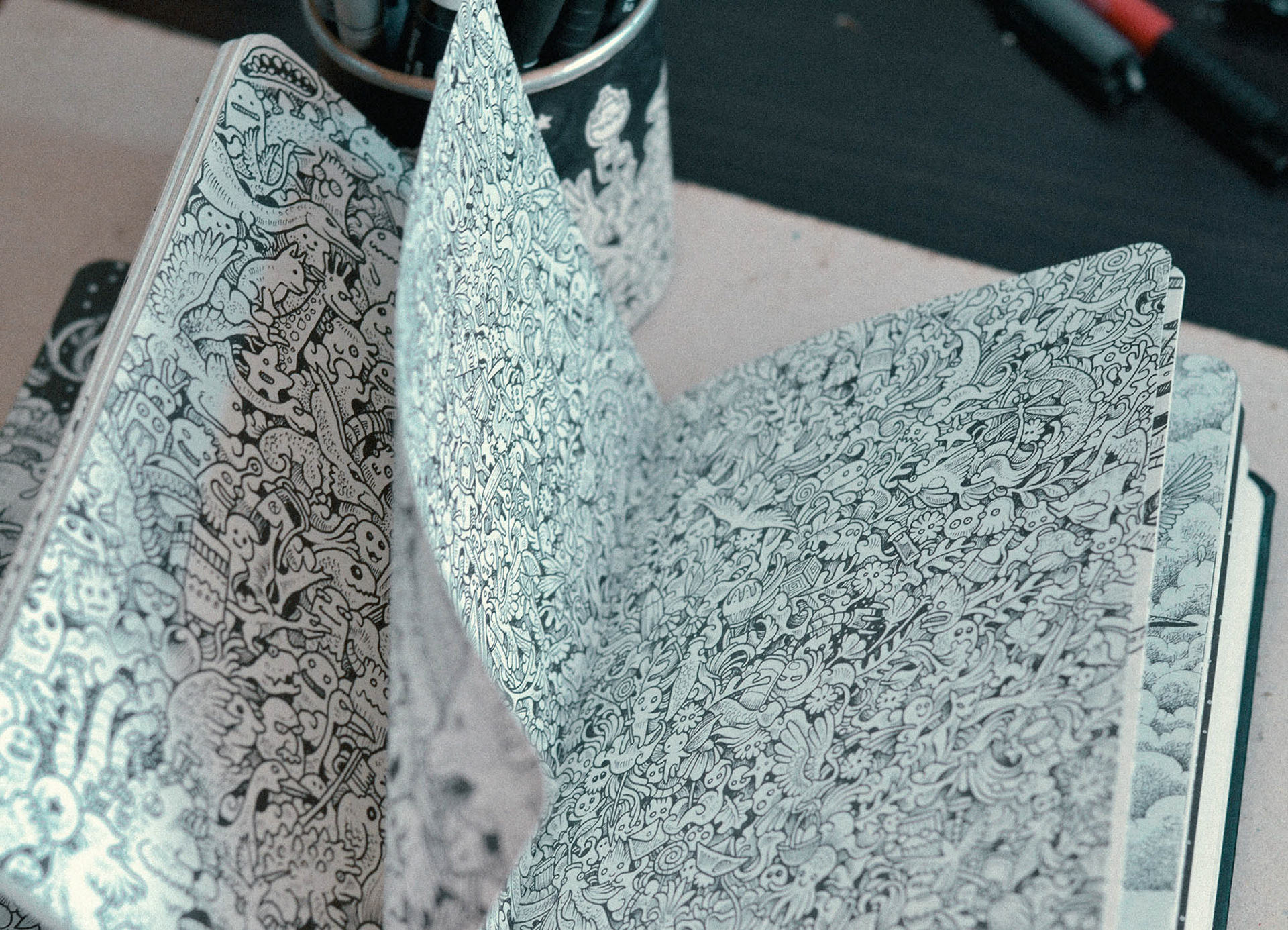 Sketchy Stories: The Sketchbook Art of Kerby Rosanes is a facsimile reproduction of selected doodles and illustrations from my sketchbooks over the past years. First published in USA in 2016 by Race Point Publishing, a member of Quarto Publishing Group USA Inc.